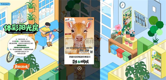 中国体育彩票创新打造的“体彩光合公寓 绿色生活顶呱刮”H5互动,将一座“会呼吸”的绿色生态公寓搬进了手机里,让绿色生活玩出花样。通过AR扫一扫、趣味躲避游戏和环保寻物的互动任务,将运动健康、情绪解压、低碳环保等理念变成好玩的游戏体验。比如探索阳光房间找寻环保痕迹可以学到低碳环保知识,玩躲避游戏时还能得到健康运动的小提示。互动活动的开展不仅让群众获得一次游戏体验,更是绿色生活方式的温柔倡导,体彩用年轻人喜欢的互动形式,把绿色理念藏进游戏细节里。