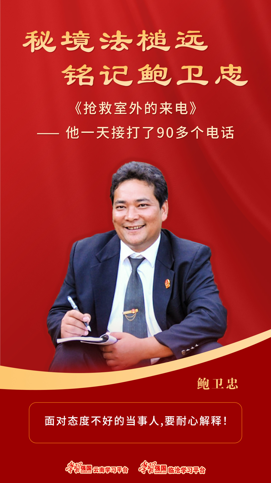 在鲍卫忠离去4周年之际,“学习强国”云南学习平台联合“学习强国”临沧学习平台推出“秘境法槌远 铭记鲍卫忠”专题策划,重温鲍卫忠扎根边疆、司法为民的感人事迹。