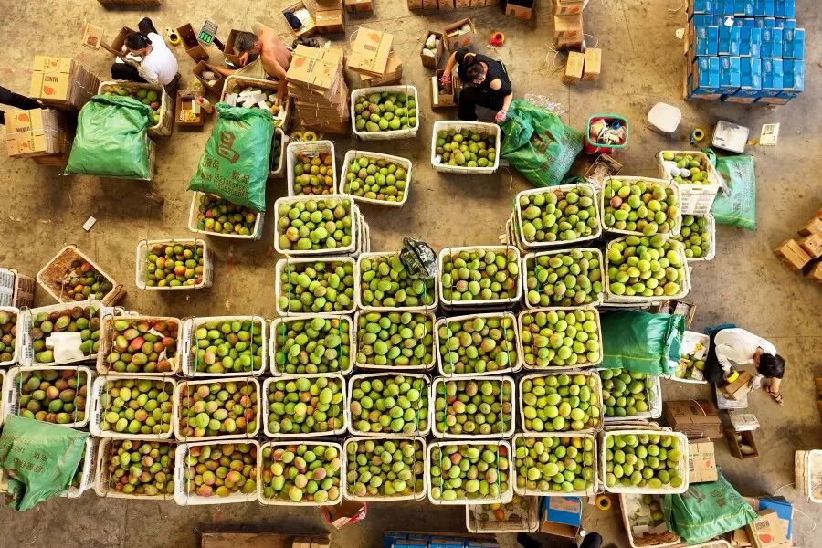 农户在分拣芒果。新华网发(徐华陵 摄)