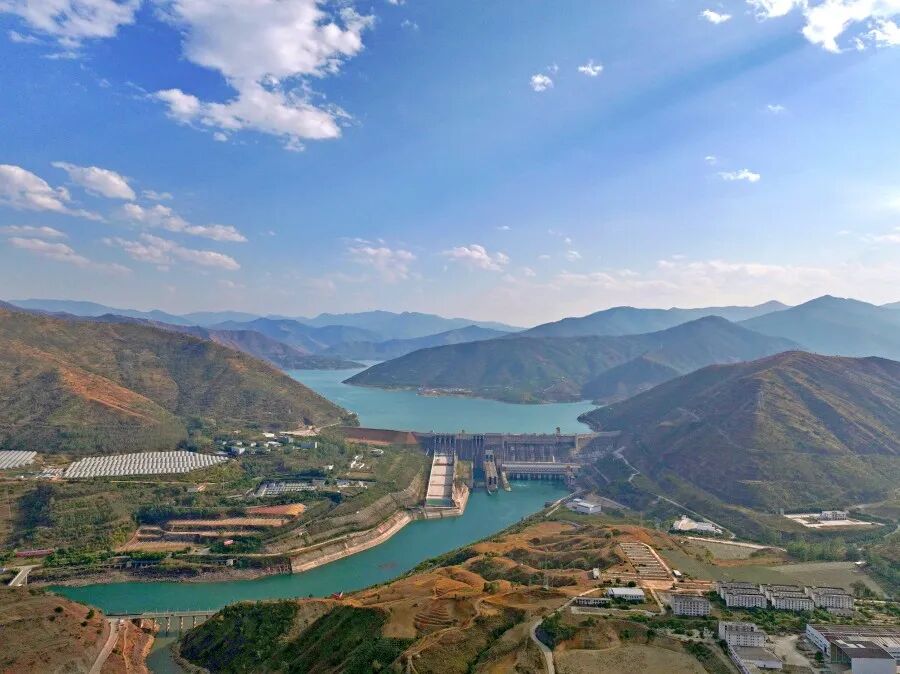航拍金沙江上的观音岩水电站。新华网发(大唐观音岩水电开发有限公司供图)