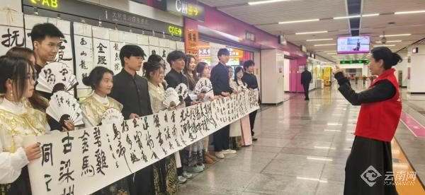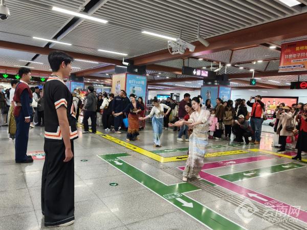 12月14日15时,由云南省文化馆、云南师范大学艺术学院、昆明地铁资源经营管理有限公司联合主办的“遇见云南 点亮昆明”民族文化艺术展示活动正式启幕。这场以校政合作创新模式搭建的大学生社会实践活动,覆盖北部汽车站、塘子巷站、东风广场站等43个地铁站点,将民族文化的活力注入城市公共空间,让云南民族文化绽放光彩。