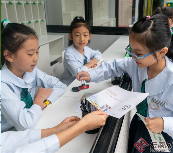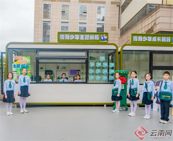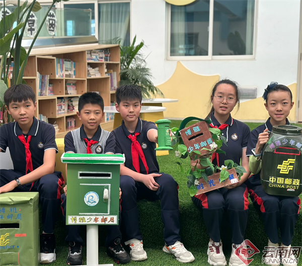 党建领航之下,校园已成为立体的邮文化育人场域。学校党支部联合中国邮政盘龙区分公司,创办了云南省首家少年主题邮局——“博雅少年主题邮局”。这个“微缩邮局”设施完备,局名牌、邮筒、营业台等一应俱全,更有专属邮政编码190900以纪念学校创立时间,成为鲜活的“移动党史课堂”。与此同时,各班级在党支部指导下打造“邮雅文化角”,或聚焦“家乡风光”串联地方文化,或围绕“节日故事”讲述传统习俗,让邮文化在校园每个角落落地生根,实现环境浸润的育人效应。