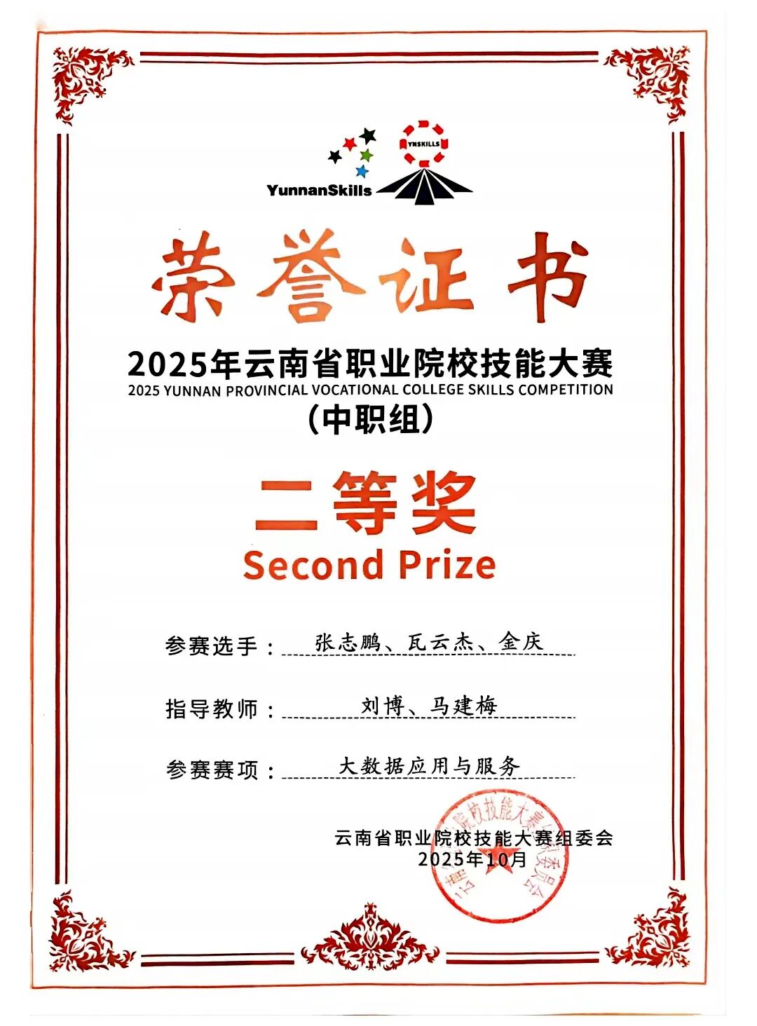 金秋十月,硕果盈枝。在刚刚落幕的2025年云南省职业院校技能大赛中,永胜县职业高级中学两支参赛队伍表现优异,其中“大数据应用与服务”赛项荣获中职组二等奖,充分展现了学校在职业教育改革与人才培养方面的扎实成效。