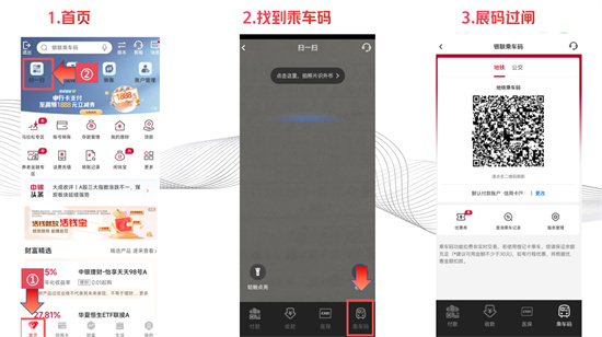 打开中国银行手机银行APP在“首页”中点击“扫一扫”图标,再点击右下角的“乘车码”即可扫码过闸。