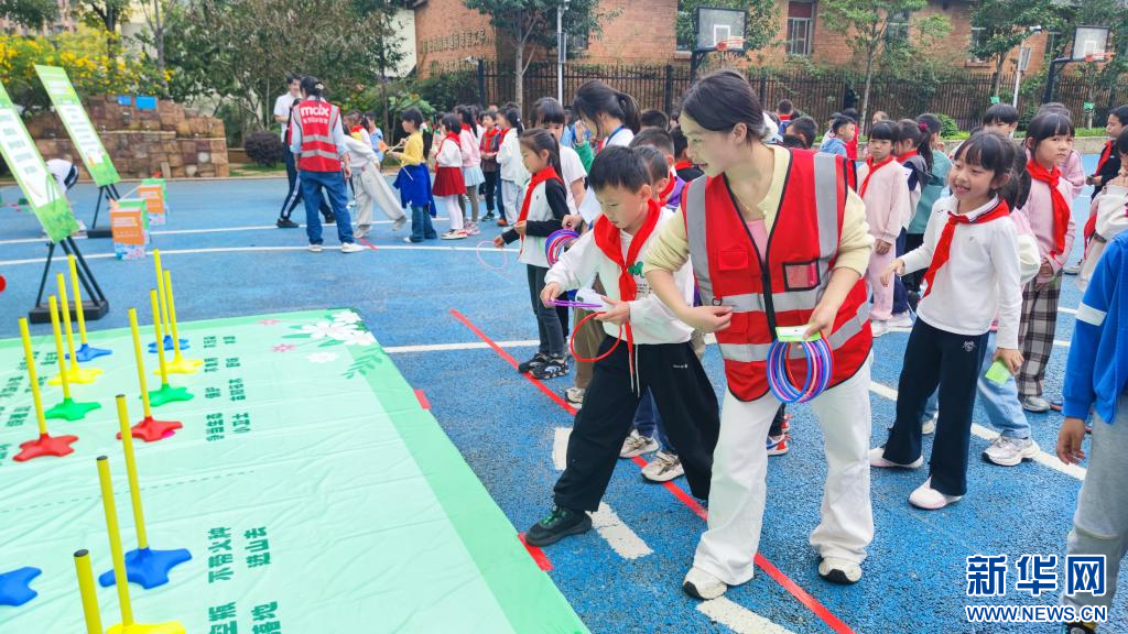 在“轿子山生态小卫士手账”环节,同学们运用讲座中的生态知识,展开想象创作,并写下自己的生态保护宣言。随后,学校在操场举行生态游园会,现场设立的科普展板图文并茂,生动展示轿子山国家级自然保护区的生态地貌、珍稀物种与生态保护成果,吸引众多师生驻足观看。在游戏互动区,同学们积极参与“圈定生态守护承诺”“生物精灵守护”投壶、“十做十不做”沙包挑战等趣味游戏,在欢声笑语中边玩边学,生态保护理念悄然浸润童心。