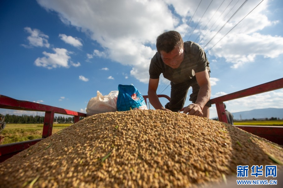 连日来,位于珠江源头的云南省曲靖市,水稻正值收割期,当地村民利用晴好天气加紧收割,“珠源大地”上呈现出一派美丽的丰收画卷。