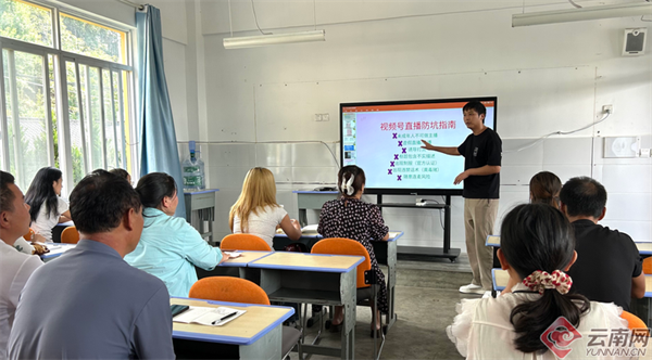 午后的保山龙陵县龙山镇在阳光照射下,愈显生机勃发。在横山村由闲置校舍改造的横山乡村电商直播基地,教室内,蒋德凡正在向直播培训课上的学员传授“直播秘籍”;直播间里,数十名助播乡亲人手一份家乡特产,与蒋德凡团队主播热情洋溢地向各地观众推销农特产品。短短3小时,这场直播成交额就突破10万元。