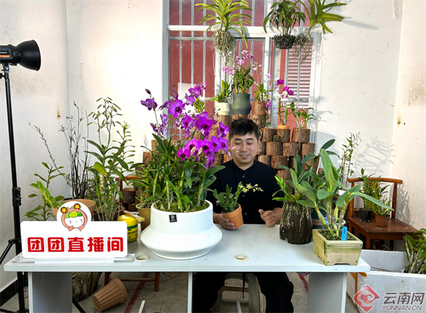 在龙陵县杨梅山村,90后大学毕业生李年兴手持一盆含苞待放的石斛花,对着手机详细讲解养护技巧,直播间在线人数不断跳动上升,订单提示音此起彼伏。