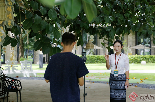 在隆阳区勐赫小镇,主播正在推介当地的文旅项目。供图
