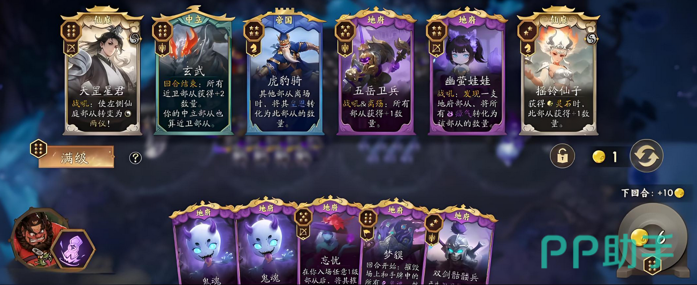 毕竟这套搭配并不是真正的后期,所以在后面不要和高成长的阵营硬碰,重点攒够100个小鬼召唤出阎罗,阎罗是整个体系中的终极战力,可以直接终结对局,在实战中还需要灵活进行兵种搭配联动,例如上面所说的搭配上玄武,让战士的数量和属性都能实现大幅度增长。用好阴兵、鬼卒给鬼将提供资源,用好奈何桥守卫和玄武协同加成战士,能进一步放大战力。