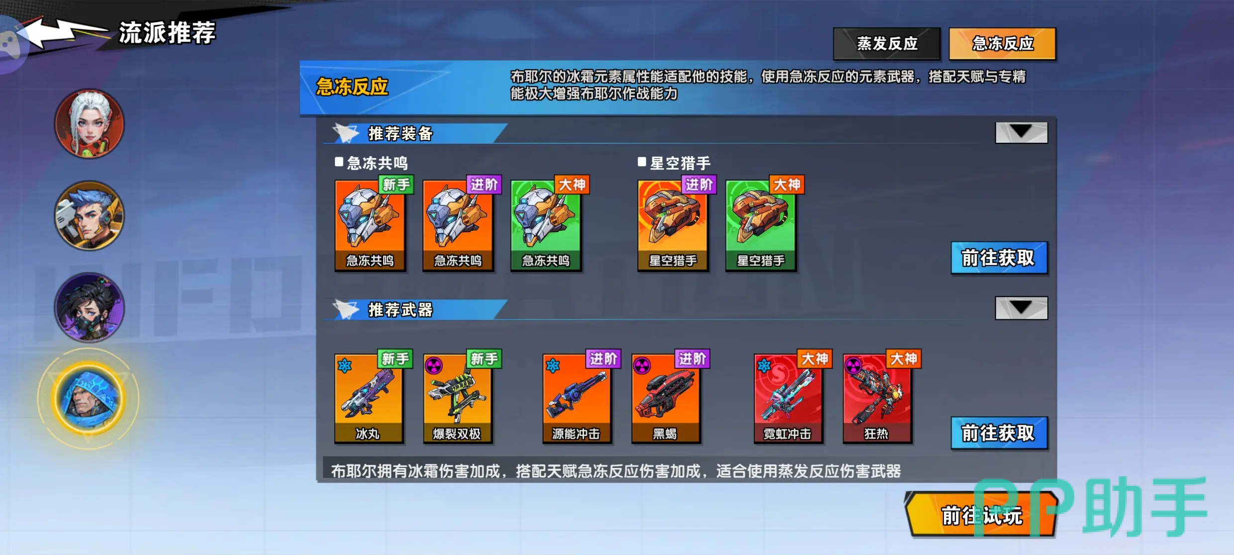 在小伙伴们氪金能力有限的情况下,推荐大家pvp形式可以优先选择冰男加星空,流派选择急冻,的两把武器枪是比较好用的,而且获取方式也相对简单,可以选择通过爬塔获得,也可以在竞技商店里用积分换。