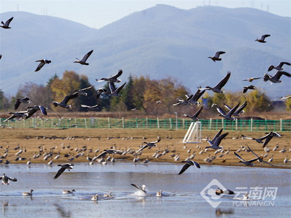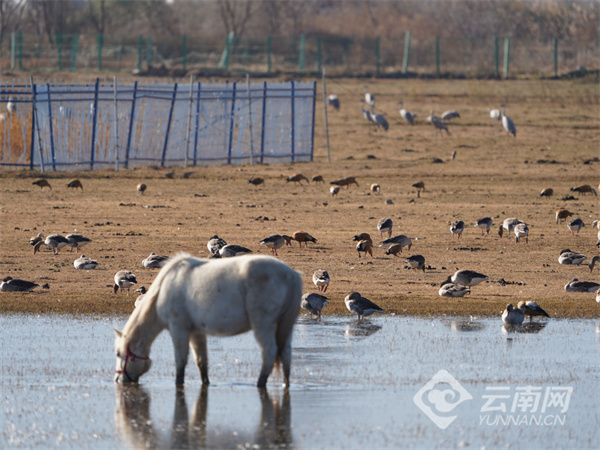 保护区工作人员介绍,近年来通过湿地修复、生态管护强化等举措,拉市海生态环境持续优化,越冬候鸟数量逐年稳定,种类也不断丰富,成为候鸟迁徙路上的“安全驿站”。记者在拍摄中观察到,保护区内设置了候鸟观测点与防护围栏,游客与摄影爱好者均自觉遵守观鸟规范,杜绝惊扰鸟类。