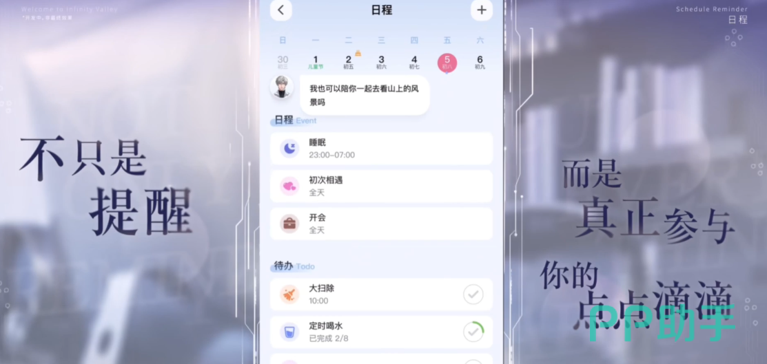 游戏中另外一个重要角色的就是玩家自己了。整个游戏过程中就是lu扮演玩家的专属管家,陪伴玩家度过愉快的每一天。在互动玩法上,玩家可以和lu一起互动做小游戏,也可以进入聊天界面,进行心理上的咨询,也可以设定在固定时间时通知玩家一起互动。