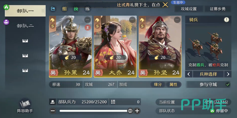 而在辅助方面,大家可以去考虑貂蝉,她带来的增伤以及频率支持效果出色,战法优选诸葛弩去提升普攻概率,然后再去搭配锋强化连击伤害的效果,或者是全军出击的保障团队联动节奏也是非常不错的选择。