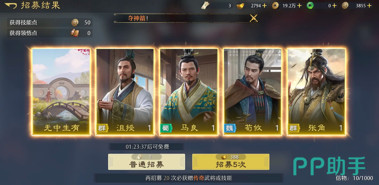 目前的抽卡资源获取方面,主要是通过预抽卡活动,玩家可以去参与“阵前点将”活动,通过新手引导、每日签到及分享邀请等方式来让自己去免费抽取12名橙将,像赵云、张辽等都是其中之一,而且所选的武将公测后绑定账号且能为大家做到全服通用。