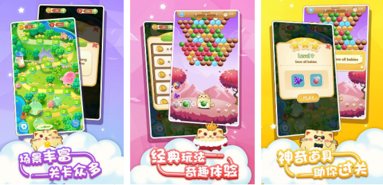 泡泡堂类手游曾是80后、90后玩家童年记忆中的经典休闲玩法,凭借简洁易上手的操作逻辑与富有策略性的物理弹射机制,长期占据休闲游戏主流品类。玩家通过调整发射角度与力度,使同色泡泡碰撞聚合,达成连锁消除效果;每轮消除不仅积累基础分数,还可触发隐藏彩蛋、收集星级目标,并逐步解锁高阶关卡与爆炸特效。