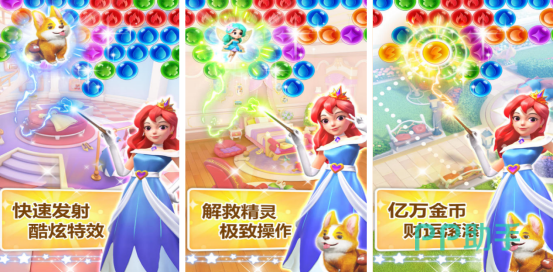 故事背景设定在一座陷入沉寂的梦幻城堡,玩家需协助爱丽公主重焕荣光。游戏提供超千个独立设计的关卡,难度梯度清晰,挑战维度多元。核心机制延续精准瞄准+同色消除逻辑,连消数量直接影响得分倍率;同时以“收集关卡星星”为关键通关条件,强化目标导向性与重复可玩性。