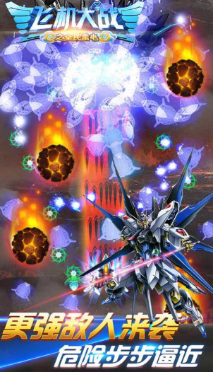 采用经典纵版卷轴结构,战机模型简约硬朗,UI界面保留CRT显示器扫描线效果。核心成长围绕“火力链”展开:初始单发子弹→双发散射→三向追踪弹→激光穿透→全屏导弹齐射。道具拾取直接改变弹道形态与攻击范围,无需进入菜单。敌机编队具备固定模式(如菱形阵、波浪阵、包围阵),熟悉规律后可预判走位,形成“观察-预判-执行”的良性循环。