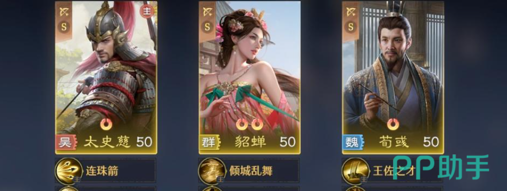 推荐主力阵容为:太史慈(主将)、貂蝉(副输出)、荀彧(功能辅助)。该组合兼顾获取难度与实战上限,全队无稀有橙将硬性要求,整体养成成本极低。其中,太史慈需达成“一红”基础条件,其余两名武将即使未进阶、未升星,亦能支撑起完整流派运转。