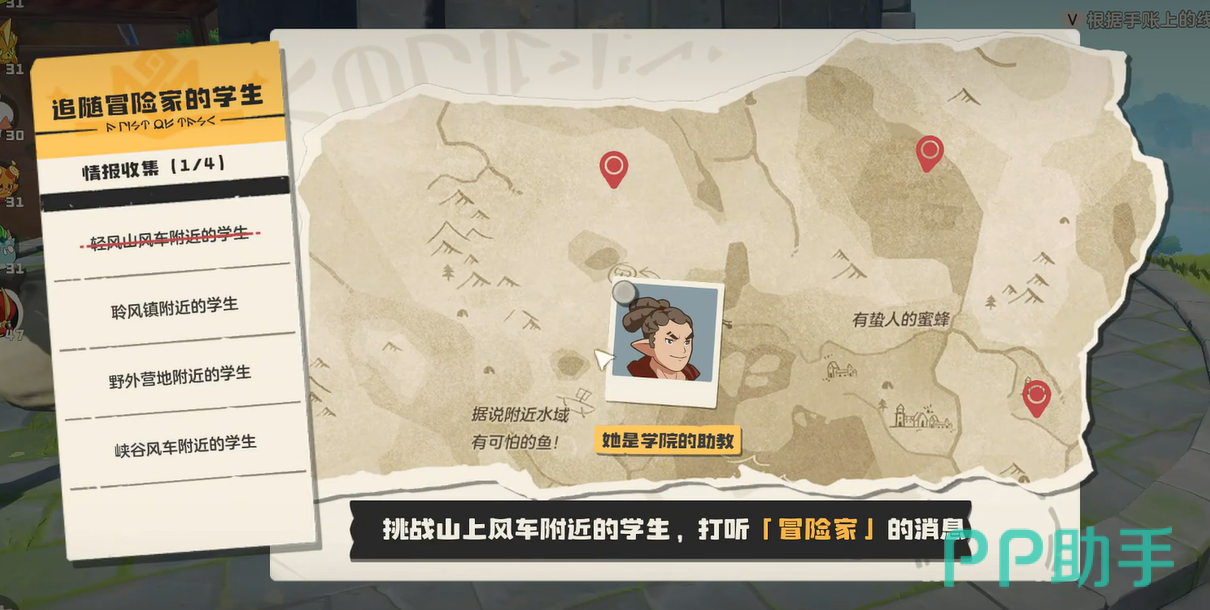 首位冒险者位于轻风山区域。请先传送至轻风山魔力之源,出传送点后沿主路前行,可见一座醒目巨型风车。该风车结构完整、高度突出,极易辨识。冒险者安迪正立于风车基座旁,与其交互后将进入强制对战。战胜后即可获得第一条关键消息。此位置路径明确,无隐藏岔路,属任务中最易定位的一环。