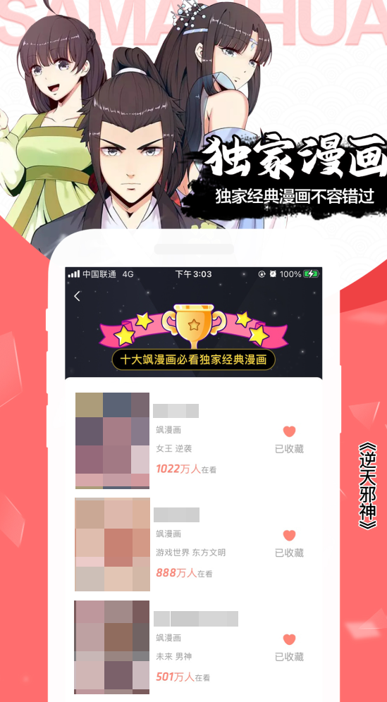i近段时间呼声也相当之高的漫画平台,免费资源要比收费资源更多,每日会根据阅读量和喜欢量来筛选排行榜,有短篇漫画和长篇持续更新漫画,漫迷能根据自己的时间来选择漫画观看,内置地互动社区更是给了无数漫迷一个相互讨论的天堂,一起猜测下面的剧情走向。