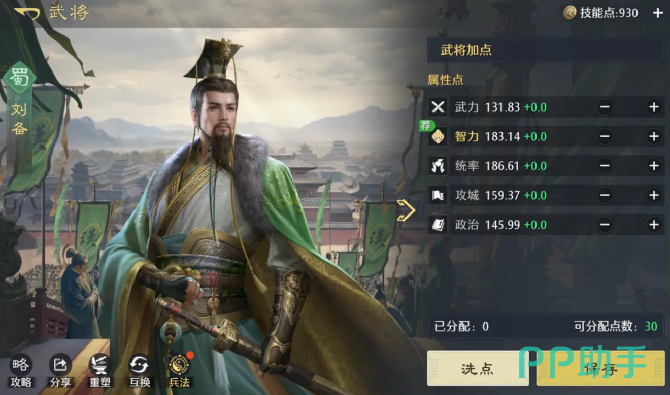 随后武将每提升10级可以获得10点属性,满级总共能获得50点,这些属性点大家能自由进行分配,通常为了角色战力大家全点系统推荐即可,不过由于我们需要培养拆迁队,所以我们需要主点攻城值。