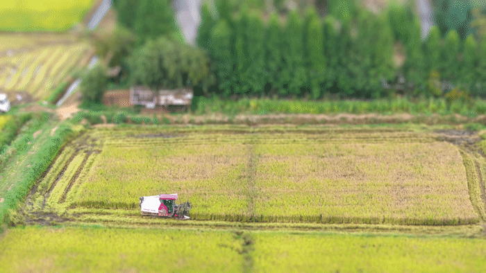 高空俯瞰,每一帧都如诗如画,呈现出金秋田园的“微观丰景”。