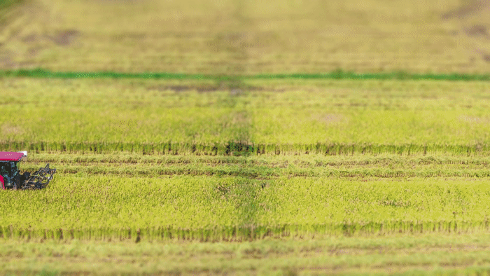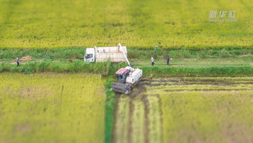 金秋时节,云南晋宁南滇池国家湿地公园旁河嘴村稻田迎来丰收。在航拍延时与移轴镜头下,广袤田野仿佛缩进童话世界。