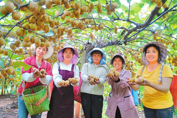 金秋时节,砚山县维摩乡倮可者村黄心猕猴桃种植基地内果香四溢,270余亩猕猴桃正值采收季,农户们穿梭果园,忙着摘果装箱,一派丰收图景。该基地不仅将猕猴桃远销至广州等地,还推出沉浸式入园采摘活动,吸引了众多游客前来体验田园乐趣。