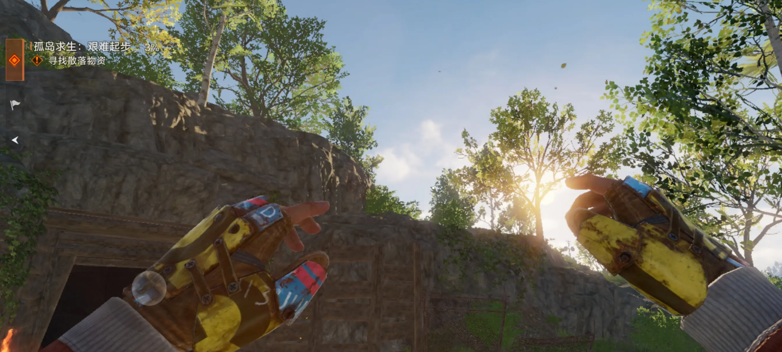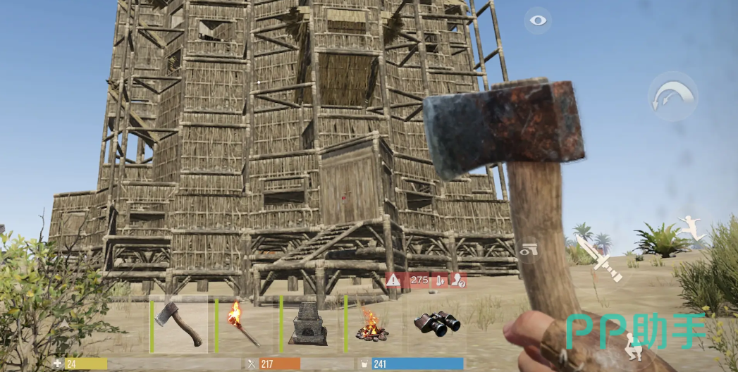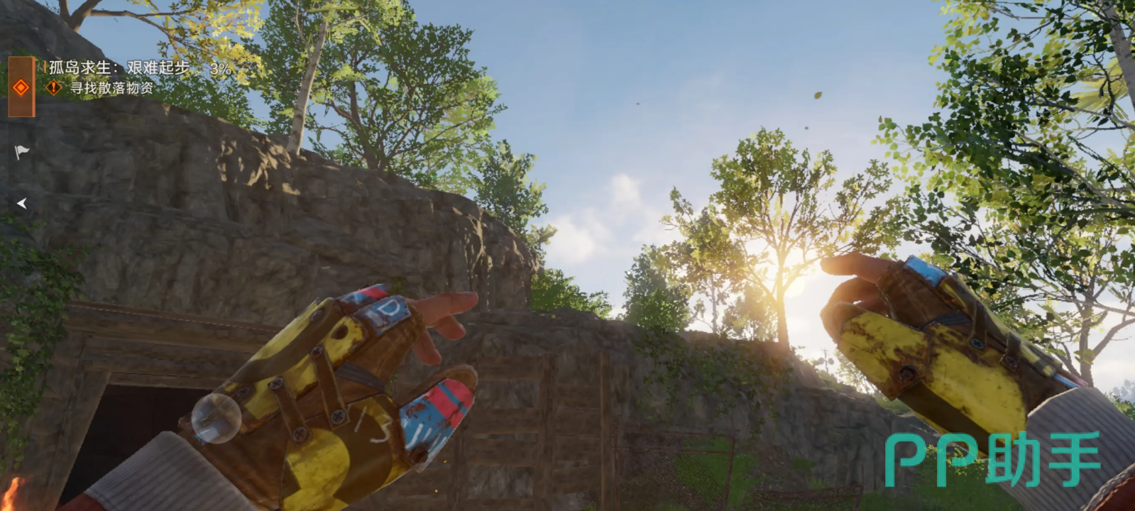 进入沙洲后,每一位玩家会携带石头和火这两种基础工具,石头可以用来采集各种有用材料,火可以用于环境的照明,新手记得优先去采集木头、石材等资源,这些能帮助做出矛等基础防御用具,这样哪怕在野外遇到了危险也可以自保。
