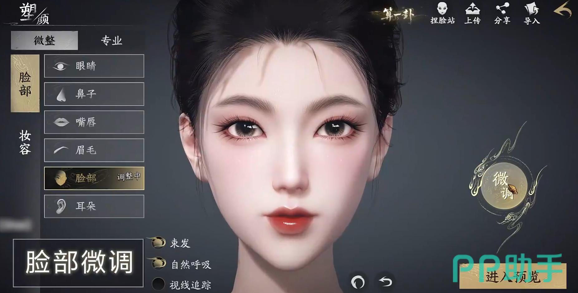 这还没完呢,在原先捏脸方案的基础上还提供了“微调”这个功能,大家可以直接去找符合自己审美的捏脸,然后利用微调这个功能来改造,这样不仅能获得独属于自己的神颜,也是可以节省不少时间。