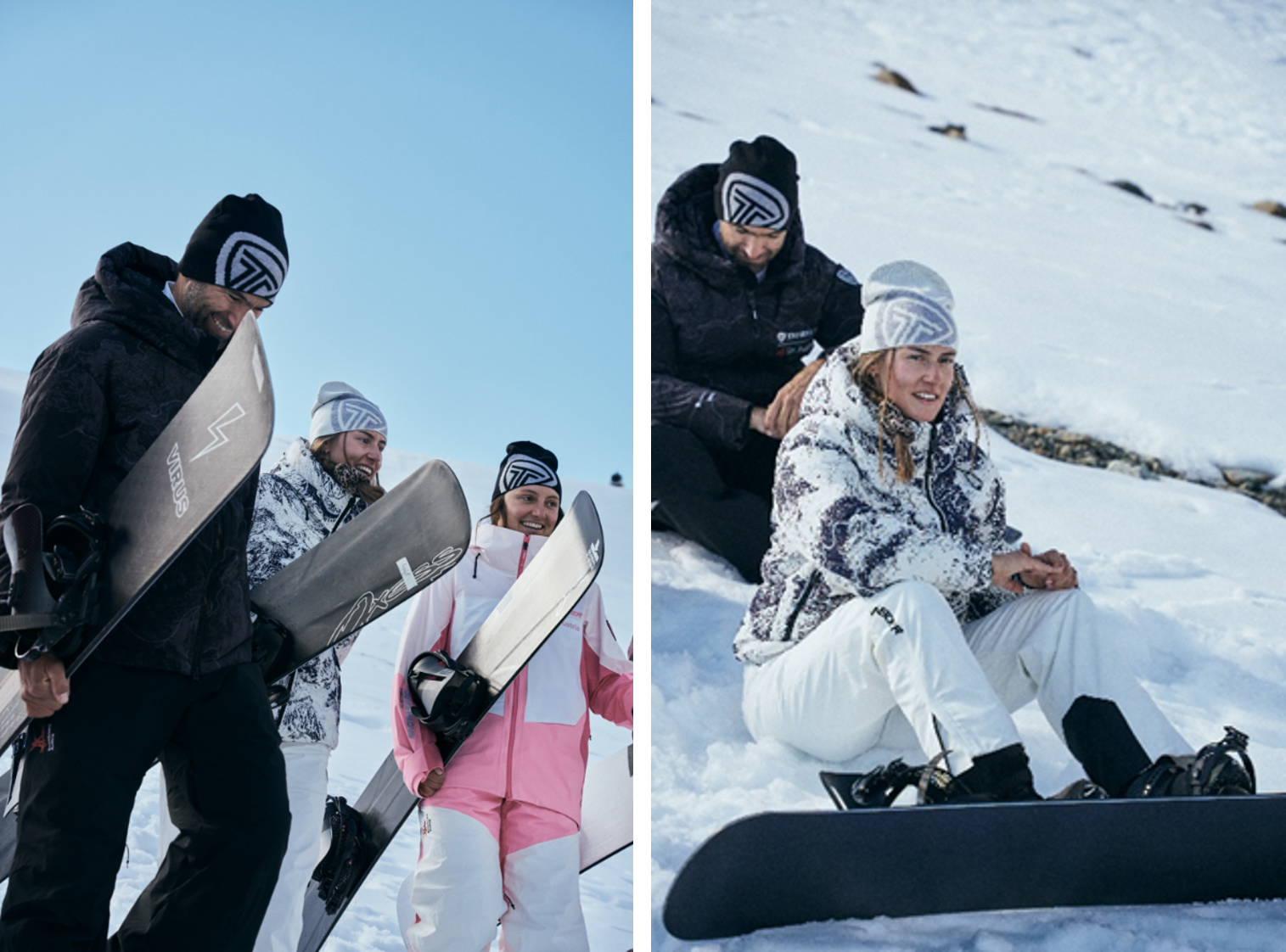 更重要的是,坦博尔推出了“阿勒泰联名款”滑雪服。设计团队将阿勒泰的山脊线条与雪道轨迹设计灵感,完成雪舞山巅图腾作品;将阿勒泰天地间的自然色彩韵律凝练于设计之中,表达对在地文化的尊重,致敬自然与冰雪运动之美。