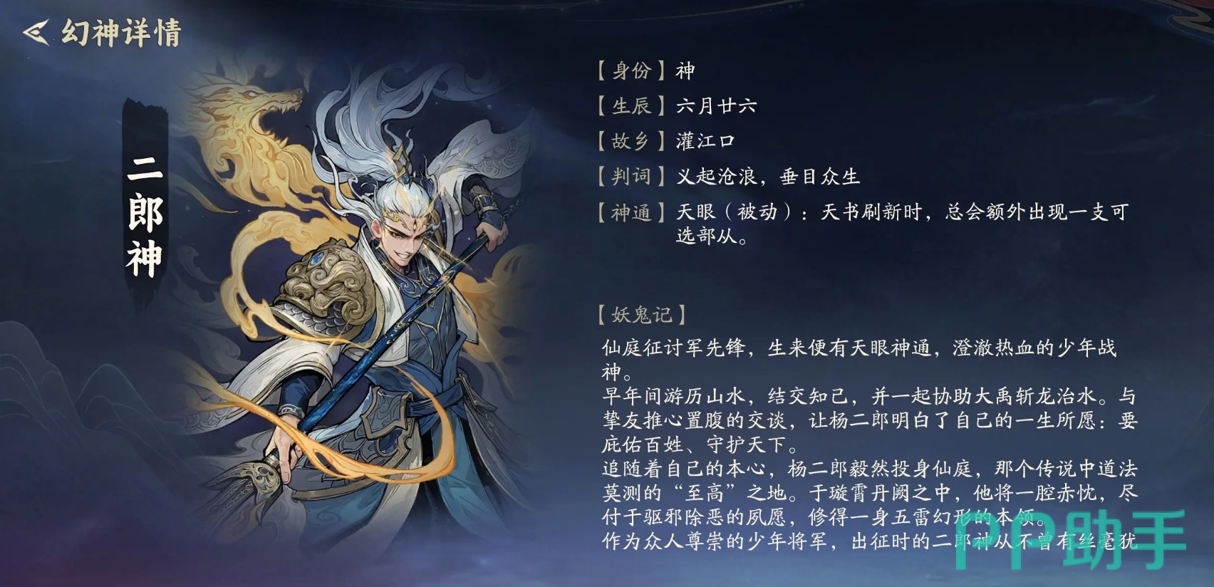 二郎神定位为节奏掌控型辅助幻神,其机制简洁而高效:每次天书刷新时,固定额外提供一支可选部从。这一设定大幅提升了关键组件的获取效率,显著缩短阵容成型周期。尤其在中期关键回合,能更大概率凑齐羁绊或核心输出,从而依靠阵容强度实现压制性推进,是偏重运营与决策精度玩家的优选。