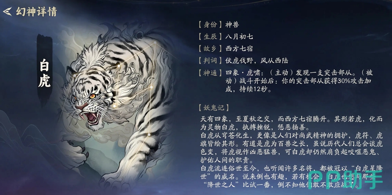 白虎主打快攻压制路线,其主动技能可立即发现一支突击部从,极大缩短突击阵容成型时间。更关键的是,战斗结束后,所有突击部从永久获得30%攻击力加成。该增益叠加迅速,在前中期即可形成爆发优势,快速淘汰对手,稳定锁定前四名次,是追求高效晋级与段位冲刺的实用之选。