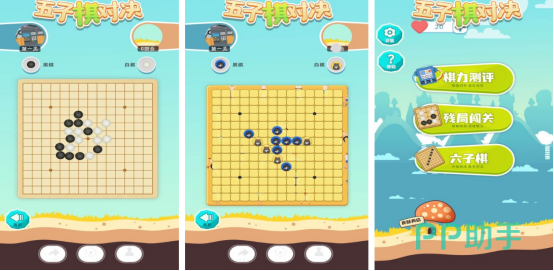 提供残局挑战、六子棋变体及标准五子棋三种模式,使用黑白双色棋子。玩家轮流点击棋盘交叉点落子,目标为率先将己方五枚棋子连成一线(横、竖、斜均可),同时需预判并阻断对手连线路径。规则清晰,上手门槛低,但策略深度充足。