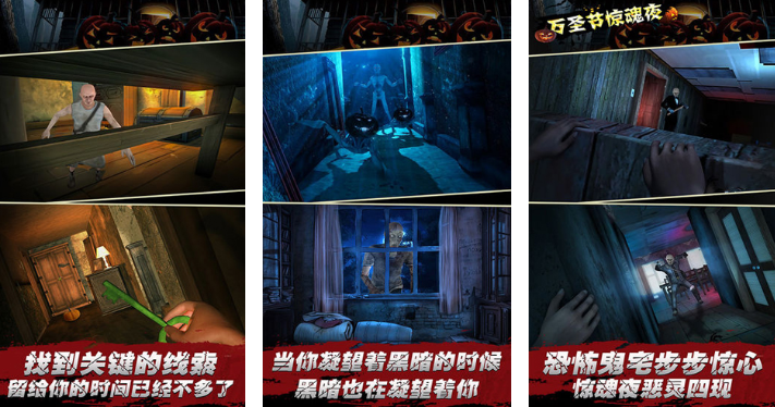 采用第一人称视角构建密室逃脱体验,强化空间压迫感与心理沉浸度。起始场景为布满蛛网、蜡烛与南瓜装饰的昏暗房间,所有线索均围绕万圣节文化符号展开,如倒挂蝙蝠机关、符文南瓜锁、幽灵镜像谜题等。玩家需细致观察环境细节、组合道具、推理解锁路径,在有限时间内揭开事件真相。恐怖强度可调节,兼顾新手适应性与硬核玩家解谜需求。