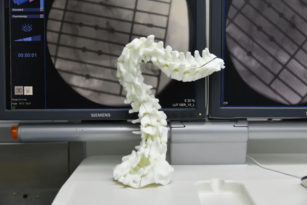 依照罗娜袜的病变脊柱制成的3D打印模型。