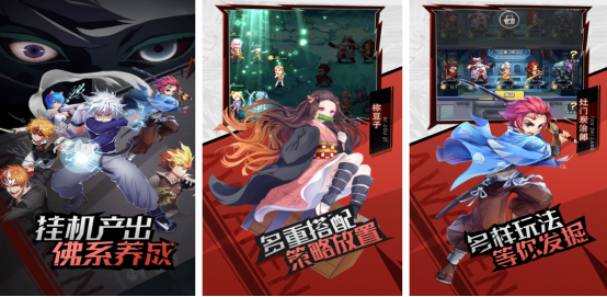 游戏内角色覆盖多个热门动漫宇宙,技能设计严格遵循原作设定,如火影角色可释放影分身与须佐能乎,鬼灭角色可施展呼吸法奥义。羁绊系统支持跨作品组合,例如“木叶精英”或“鬼杀队核心”等主题阵容,激活后可提升暴击率、减伤比例及特殊状态抗性。战斗过程强调节奏把控与技能释放时机,配合全屏特效与镜头运镜,强化沉浸式格斗体验。