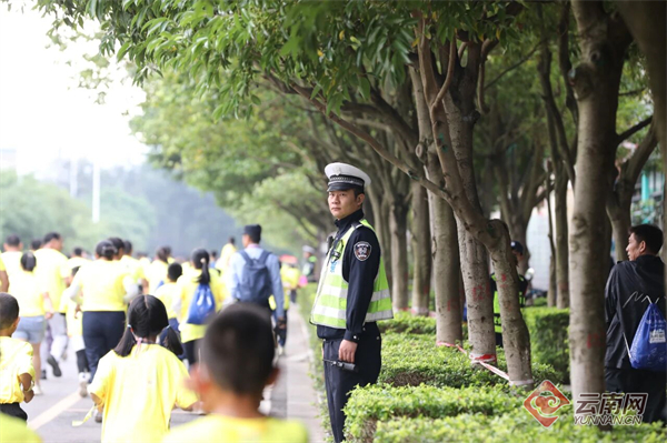 云南网讯(记者 赵岗)10月12日,为保障2025富滇银行·昆明半程马拉松赛事安全有序进行,昆明公安出动警力675人,发动保安员1400人,全体安保力量提前上岗,按照既定部署,全力维护好比赛起(终)点、线路和石林县社会面治安、交通秩序。