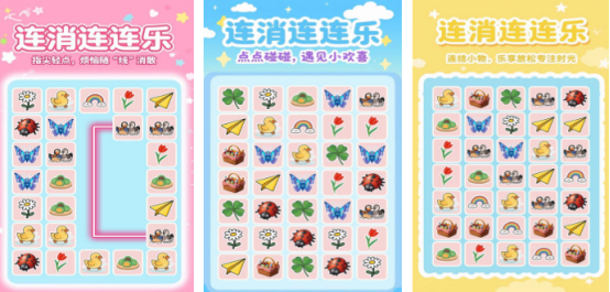 以基础连连看机制为底层框架,拓展多主题视觉体系,涵盖昆虫生态、四季花卉等原创美术设定。操作方式保持轻量化——单指触控即可完成连线与消除,交互响应迅速。每关清除全部目标元素后,系统自动解锁下一难度层级,形成清晰成长路径,让玩家持续获得正向激励。