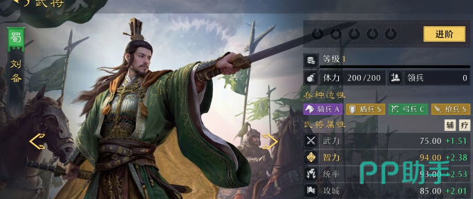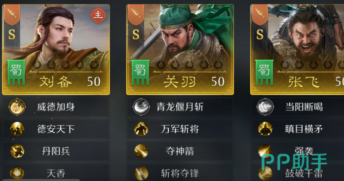 战斗以“三格站位+单主将驱动”为基本框架:队伍由左至右划分为1号、2号、3号三个固定位置。仅1号位主将可主动释放怒气技能,该技能图标始终处于常亮状态;其余两名副将(如2号位关羽、3号位张飞)的怒气技能图标默认为灰色,全程不可手动激活,仅能通过被动条件触发特定效果。在属性设计上,游戏摒弃了传统四维体系,仅保留统帅、智力、武力三项核心数值,完全移除“速度”维度——这一设定直接决定了行动节奏不可叠加、不依赖先手博弈,转而强调技能周期与站位协同。