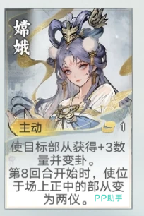 嫦娥是卦象系统的中枢调度者,围绕“黑白卦象”与“变卦”两大机制构建战术弹性。其主动技能可为目标队友赋予三单位数量加成并触发变卦;自第8回合起,更可将场上所有己方单位转化为“两仪形态”,大幅提升生存与输出稳定性。该机制有效缓解了卦象配置僵化、中后期调整乏力等常见痛点,兼顾前期过渡平滑性与终局对抗容错率。