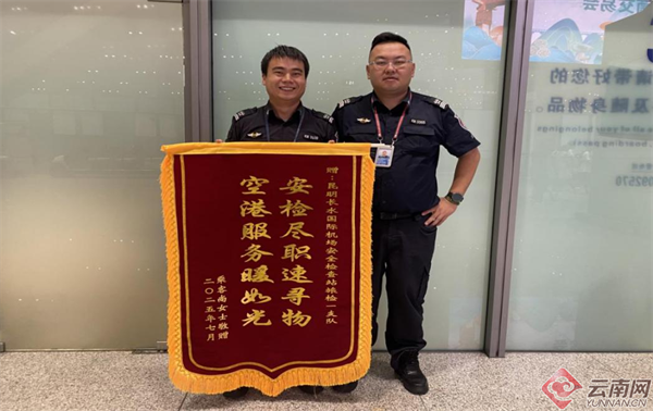 云南网讯(记者 彭锡 通讯员 沈怡辰)“原以为暑运高峰安检忙着安全检查,丢了存重要工作录音的耳机很难找回,没想到不仅快速找到,还贴心送回了!”近日,尚女士在昆明机场安检现场,将一面印着“安检尽职速寻物 空港服务暖如光”的锦旗送到安检员手中,再三表达感谢。这暖心一幕,正是昆明机场安检站首创遗失物品送还机制、提升服务质效的生动缩影。