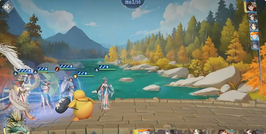 虽然也是回合制战斗,但是并未采用相对比较复杂的属性克制,组队只需要跟根据角色定位特点展开布阵,还加入了兽神协战系统,在神兽的共同组合之下,形成多样化战斗风格。