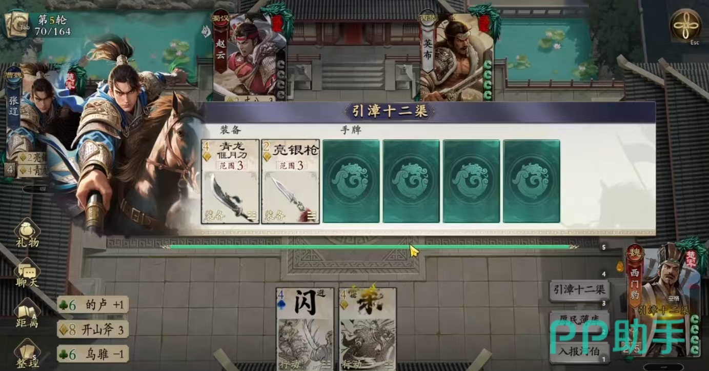 第三个技能入报河伯,限定技,可以将场上和弃牌堆中所有的黑桃牌洗回牌堆。这就相当于手牌中的黑桃都会被此技能洗入牌堆,这个技能其实就是配合引漳十二渠来发挥效果。相当于将黑桃牌给了对手,但是可以利用此技能再将对方手中的黑桃牌洗回到牌堆,所以该角色的三个技能设置的非常巧妙,环环相扣。