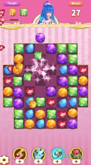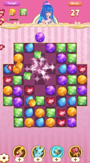 基于国产知名IP《叶罗丽》正版授权开发的消除类手游。区别于传统三消规则,本作采用“点击即消”机制——玩家选定目标区域后单击触发连锁反应,操作响应迅速,连击反馈清晰。关卡设计融入动画原作的关键剧情节点与角色羁绊关系,每章通关解锁专属语音与回忆片段。特效表现突出,粒子爆炸、光效流转与角色Q版动画同步呈现,强化视觉沉浸体验,契合IP粉丝对世界观还原的核心期待。