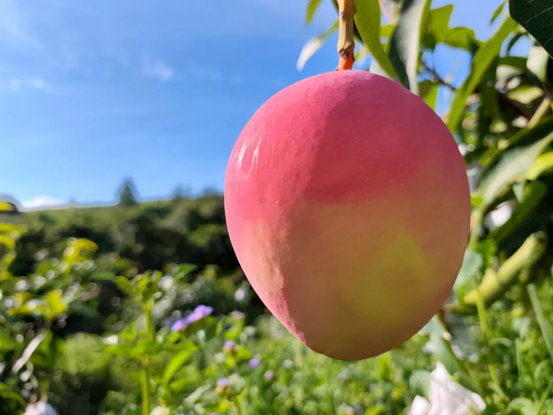 采摘的乐趣,更是藏在每一个小细节里:找到自己心仪的那一个,当指尖触到光滑的果皮,就忍不住凑近了闻一下果子的清香,咬一口刚摘的芒果,细腻无丝的果肉,香甜的果汁,成为秋天不一样的味道。