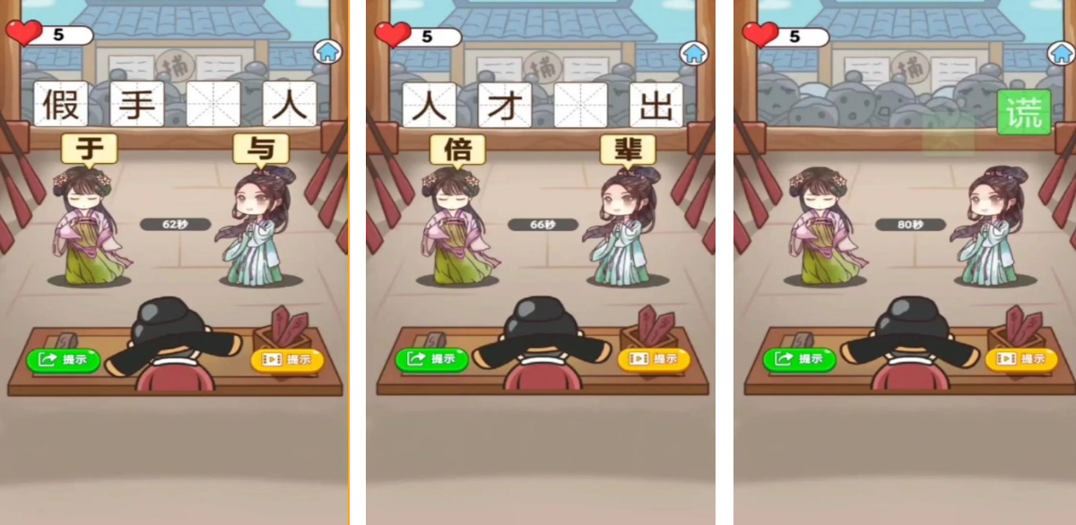 本作主打轻量级解谜体验,题干简洁明了,强调自然联想与汉字拆解能力。游戏采用线性关卡制,每道题目提供简短语境提示,答案往往源于日常用语、谐音双关或字形变化。随着进度推进,题目由基础常识逐步过渡至多层语义嵌套,难度梯度平缓。当玩家陷入瓶颈时,系统支持消耗内置资源获取分步提示,兼顾挑战性与可玩性。