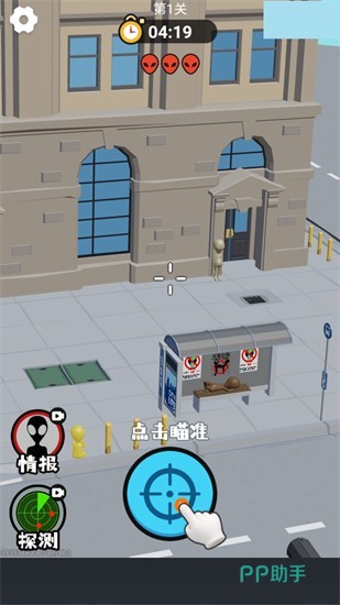 本作强调高精度瞄准与环境识别能力。外星单位具备拟态特性,可融入背景地形,玩家需借助可升级的光学瞄准镜系统,在复杂场景中快速定位目标。每关均设置多重干扰要素,如动态光影、移动障碍及突发性敌群突袭,考验反应速度与战术预判能力。武器系统支持配件定制,包括稳定器、热成像模块与弹道校准组件。