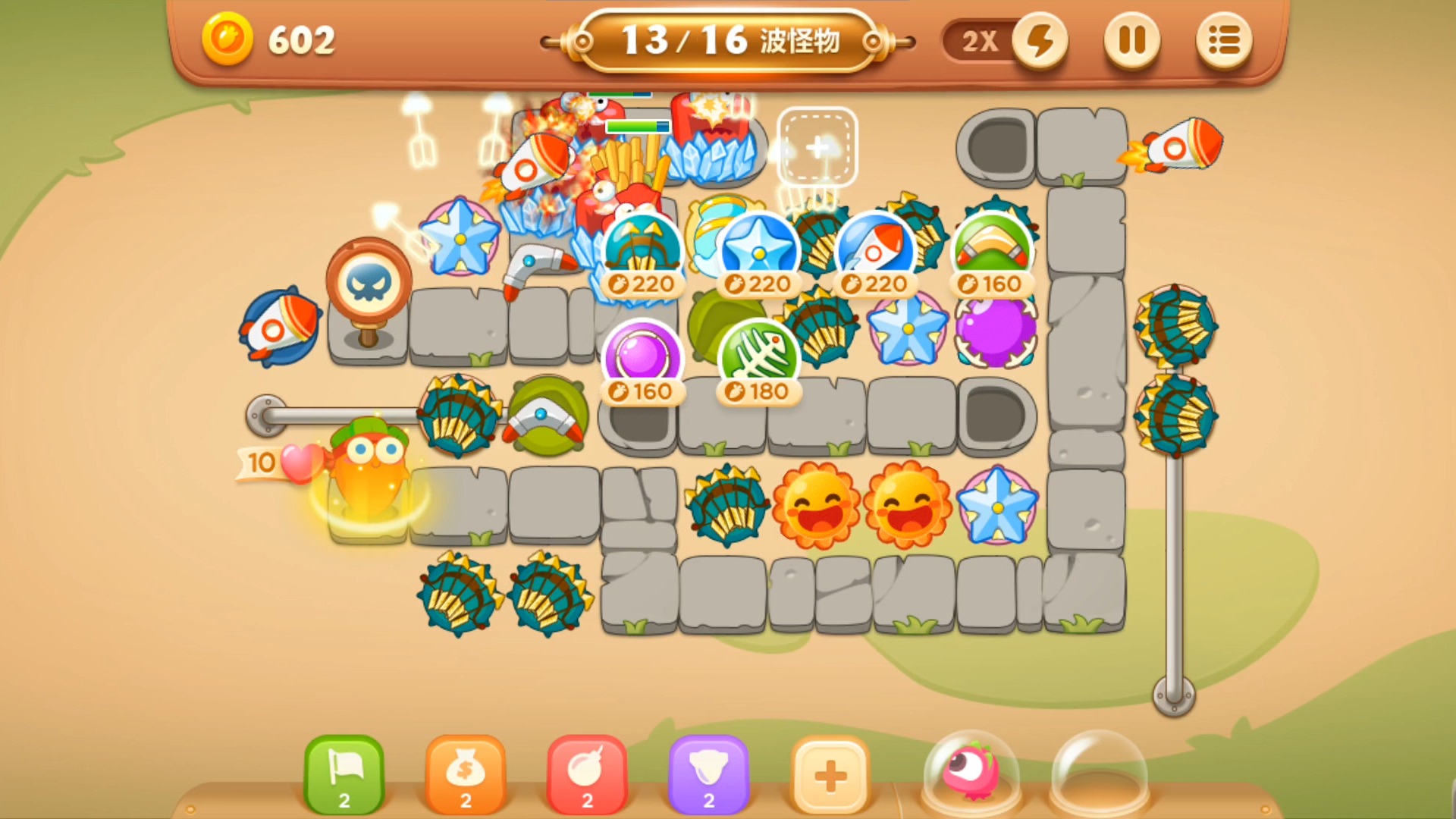 延续IP经典美术语言与轻量化操作逻辑,聚焦“萝卜守护”这一核心目标展开关卡设计。防御塔类型覆盖减速、眩晕、穿透、溅射等基础属性,并引入天气系统与临时增益道具增加变量。前期关卡侧重机制教学,中后期逐步叠加多线进攻、隐形敌人、移动靶点等复合挑战,促使玩家反复优化塔位组合与升级优先级,达成策略性与休闲感的有机统一。